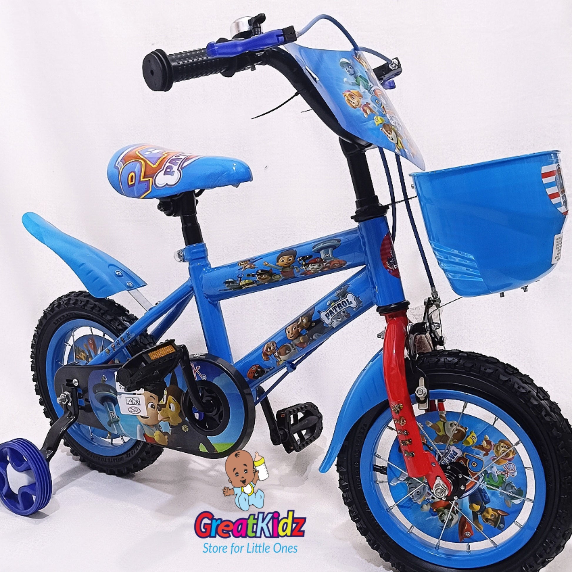 Design: Features Paw Patrol characters, mudguards, puncture-proof EVA tires, and a front basket.